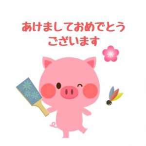 無料LINEスタンプ「年賀状 あけましておめでとうございます ブタと羽子板」