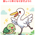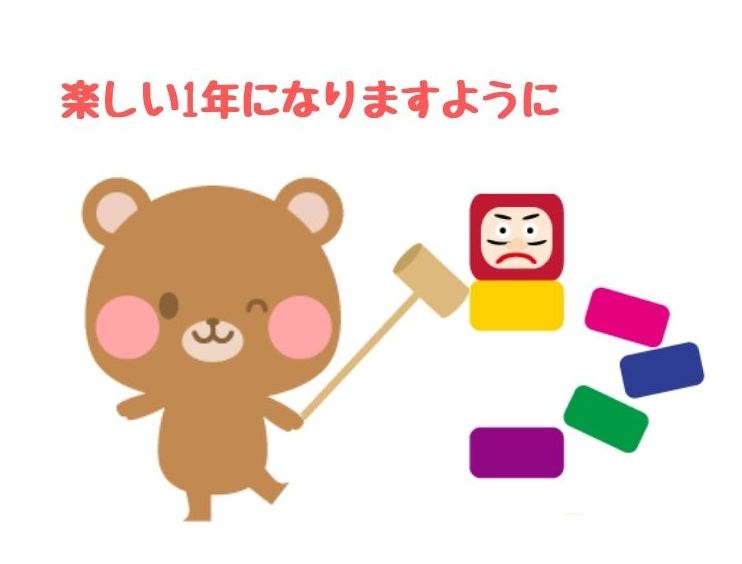 無料LINEスタンプ「年賀状 楽しい1年になりますように クマとだるま落とし」