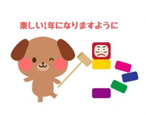 年賀状無料LINEスタンプ「年賀状 楽しい1年になりますように 犬 だるま落とし」