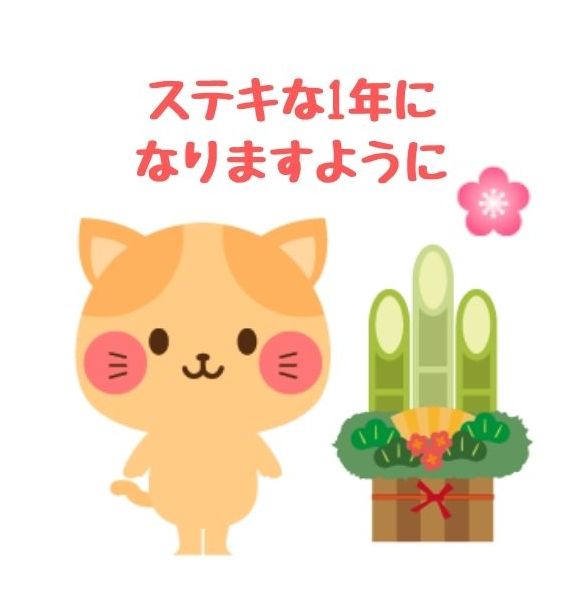 無料LINEスタンプ「年賀状 ステキな年になりますように 猫と門松」