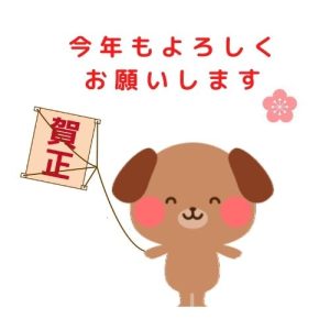 年賀状無料LINEスタンプ「凧あげをする犬 今年もよろしくお願いします お正月」