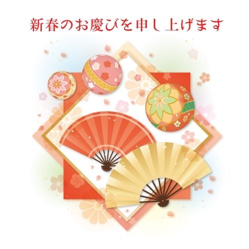 年賀状無料LINEスタンプ「お正月のイラスト 扇子と毬 新春のお慶びを申し上げます」