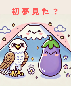お正月無料LINEスタンプ「初夢 一富士二鷹三茄子 初夢見た?」